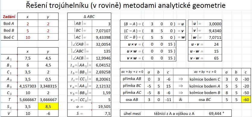 Zadání úkolu z analytické geometrie – trojúhelník ABC v rovině: Řešení trojúhelníku - analytická geometrie (doplň vzorce).xlsx; opravený ilustrační obrázek: trojuhelnik.jpg