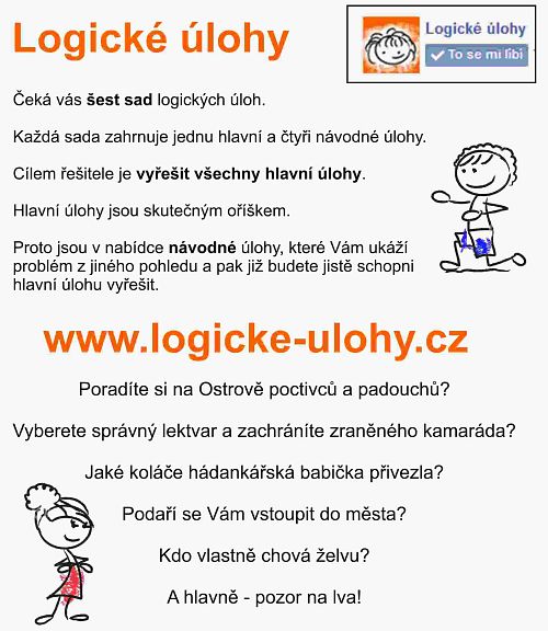 Zajímavý projekt nabízejí stránky www.logicke-ulohy.cz/. Jedná se o šest sad logických úloh, každá sada obsahuje jednu hlavní a čtyři návodné úlohy.